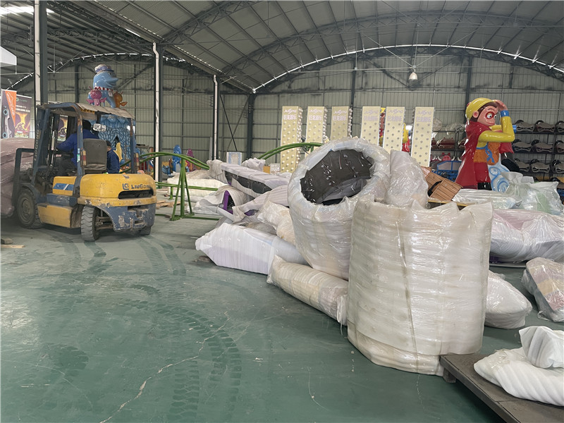 2022年3月8號,天氣晴朗,未來可期。一大早來到公司就看見門口停了四五輛大貨車,原來巨龍游樂今天要往平頂山郟縣發(fā)貨了,今天發(fā)的設(shè)備比較多,整整有五套呢,怪不得停了那么多輛車,其中包括豪華轉(zhuǎn)馬,逍遙水母,青蟲滑車,花果山漂流以及自控飛機(jī),全部都是經(jīng)典項(xiàng)目。下面我們就來看看我們的裝車現(xiàn)場吧:
