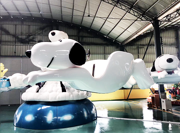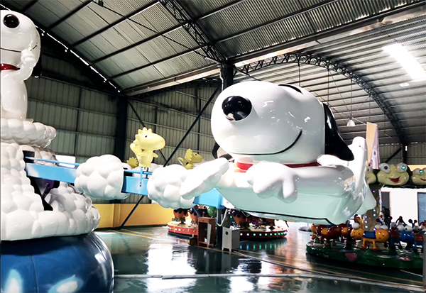 而今年是2018年也正是十二生肖中的狗年,在正值此金狗賀歲之際我們龍之盈隆重推出了新型游樂設備“飛天史努比”就是為了讓小孩子們心心念念的史努比從熒幕變成了游樂場中的實物,并有機會坐在史努比身上旋轉、俯瞰,滿懷的開心肯定是意在言外,這就是夢想成真的感覺,小朋友們怎么可能會錯過。