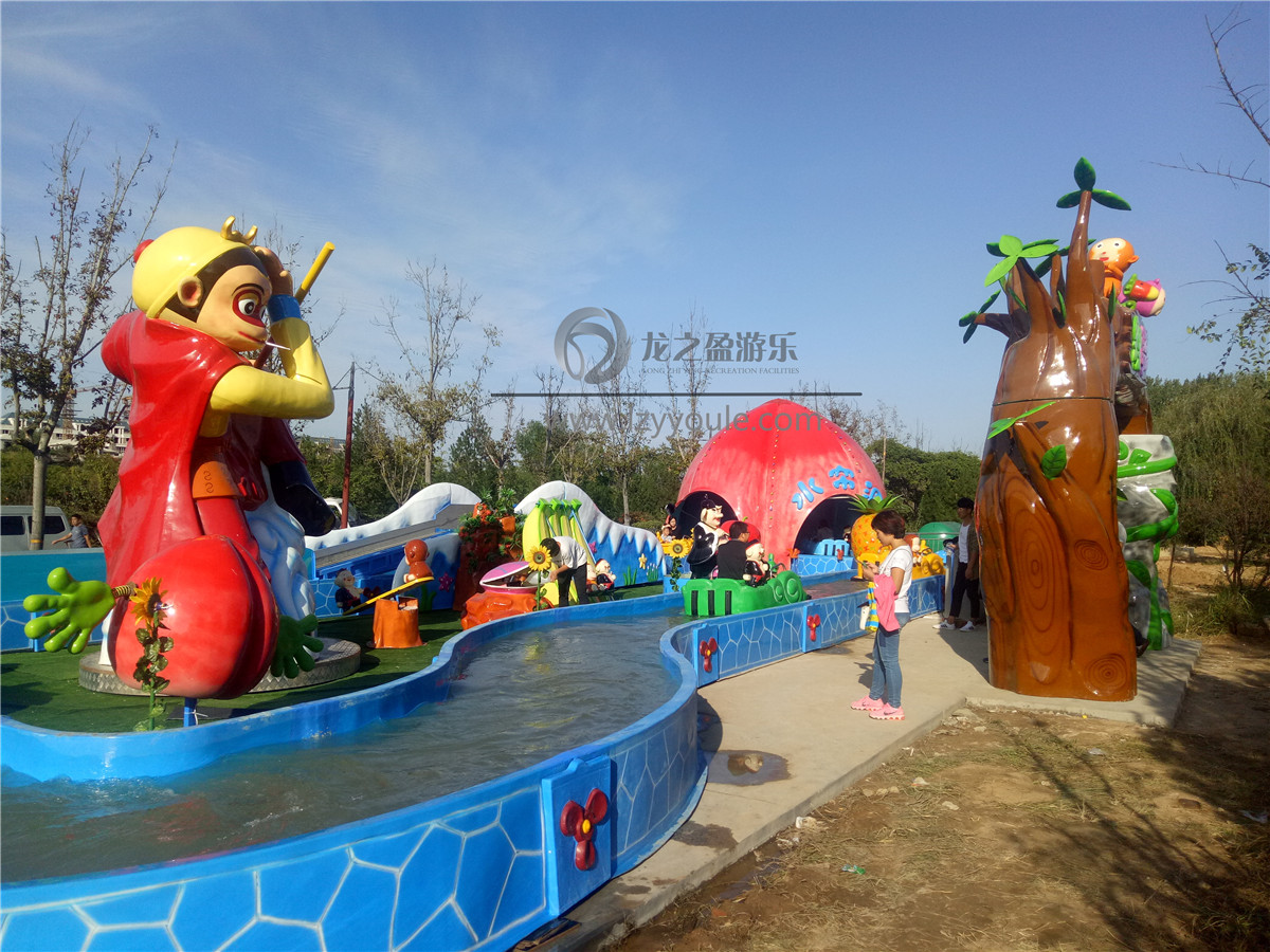 作為許昌龍之盈游樂設(shè)備有限公司的專利新品兒童游樂設(shè)施,花果山漂流一經(jīng)投入就受到孩子們的熱情追捧。孫悟空一直都是孩子們模仿崇拜的王者,孫悟空以經(jīng)典的腳踏筋斗云姿勢佇立游樂設(shè)施中央以及各種有關(guān)花果山的卡通造型,和它與眾不同新穎的玩法使之成為游樂園中的吸金利器。