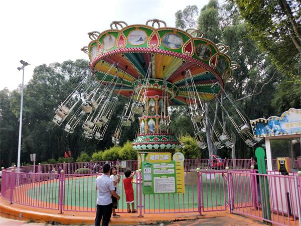 搖頭飛椅像是一把能搖頭的大傘,下吊著很多把靚麗、精致、安全的吊椅,在大傘轉(zhuǎn)動(dòng)或搖頭時(shí),吊椅在空中波浪起伏、旋轉(zhuǎn)飛舞。此時(shí)乘坐在吊椅上的游客充滿(mǎn)刺激、浪漫的感覺(jué)。